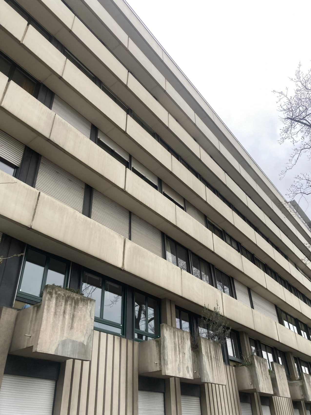 Le bâtiment, construit en 1959, est un immeuble collectif de 24 logements sur 4 niveaux et un rez-de-jardin de box et de caves. De forme étoilée, il est distribué par un escalier central, sans ascenseur, dont une entrée côté rue.