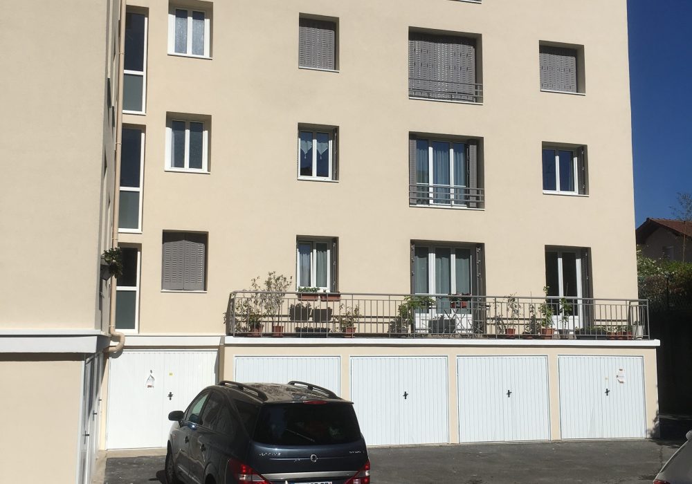 Les travaux de rénovation énergétique ont compté pour la façade: une Isolation Thermique par l’Extérieur en panneaux de laine de roche avec finition enduit grain moyen, une réfection des métalleries avec laquage, le remplacement des portes de garage par des modèle isolant et le remplacement des pavés de verre de la cage d’escalier par des menuiseries bois. Concernant les lots techniques, la toiture ayant été refaite en 2015, une ventilation naturelle assistée a été installée, avec le remplacement des bouges d’extraction en pièce humide et des réglettes hygroréglables aux fenêtres, ainsi qu’un détalonnage des portes.