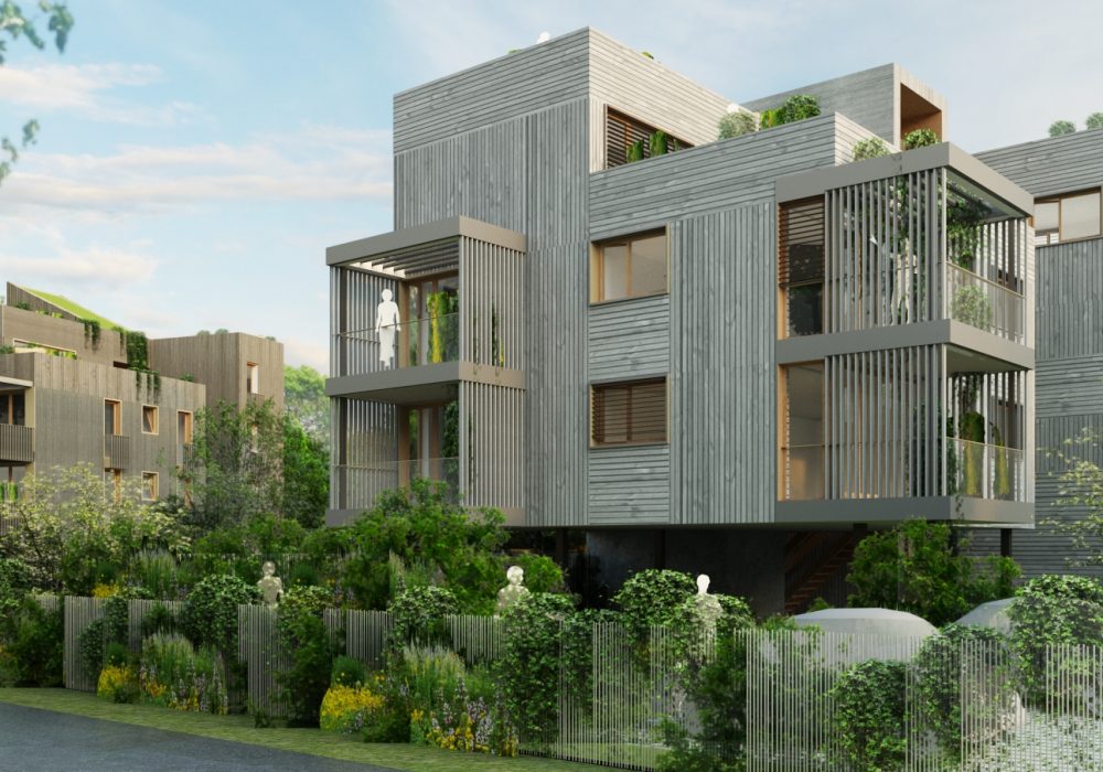 En effet, les qualités environnementales de la construction à ossature bois ne sont plus à démontrer (matériau biosourcé, stockage du carbone, construction sèche, haute qualification des artisans…). Longtemps restreint à la maison individuelle, les immeubles en ossature bois prennent actuellement un essor sans précédent, dans la perspectives des grands enjeux climatiques et écologiques.