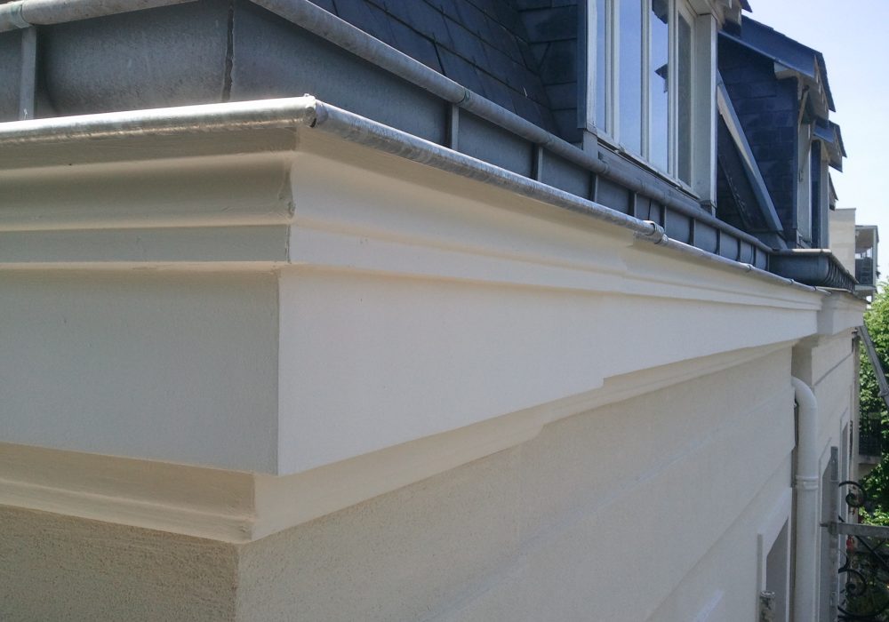 Cet immeuble située devant le parc de Vincennes date probablement de la fin du XIXè siècle. La structure bois des planchers ayant fortement fléchie au fil du temps, les propriétaires de cet immeuble ont jugé bon de procéder à une restructuration complète des 4 appartements et d’effectuer un ravalement de la façade avec une isolation thermique par l’extérieur (ITE). L’ITE se devait de respecter parfaitement les modénatures de la façade existante, l’immeuble étant situé en secteur sauvegardé. Les bandeaux, pilastres et corniches ont été reconstitués en polystyrène. La partie courante du ravalement est également constitué de plaques de polystyrène graphité gris en 160mm d’épaisseur adaptées au supports comprenant fixation + mortier résineux + armature en fibre de verre incorporée par marouflage + régulateur de fond + crépi acrylique.